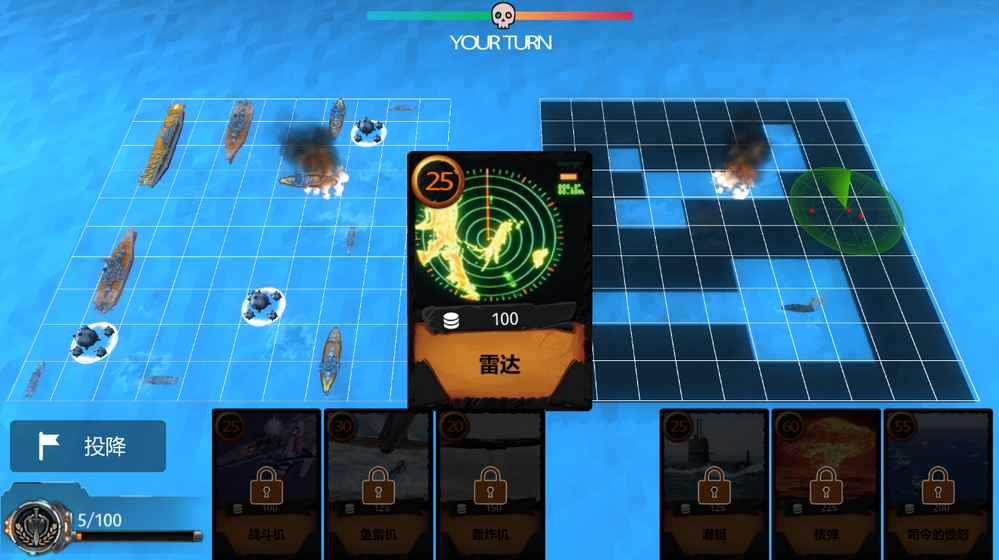3. 辅助道具使用:可使用深水炸弹、88毫米高炮、雷达等辅助道具攻击敌人、探测敌方位置。