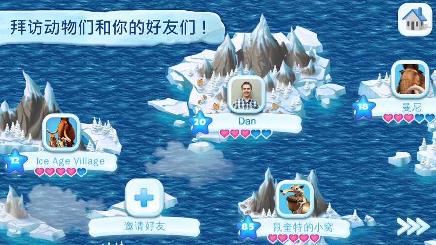 3. 角色互动:与《冰川时代》电影中的经典角色互动,完成他们的特殊任务,解锁新的故事剧情和奖励。