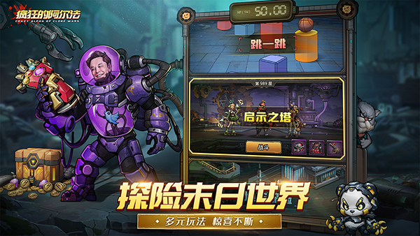 《疯狂的阿尔法最新版》是一款集策略、冒险动作与角色扮演于一体的创新手机游戏,带你进入一个充满未知与危险的奇幻世界。在这个世界里,你将扮演一名勇敢的探险家,踏上寻找传说中的“阿尔法之心”的旅程,以解开世界的谜团并拯救被黑暗势力笼罩的王国。疯狂的阿尔法以末日废土为背景,采用新奇且暗黑的画风,为玩家呈现出一个充满苍凉与危险的独特世界。游戏中的每一处场景都经过精心设计,荒芜的废墟、破败的机甲残骸、神秘的文明遗迹,无不传递出末日世界的压抑与神秘。感兴趣的朋友赶紧来下载!